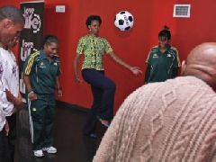 Nesta quinta-feira, Michelle também esteve com o arcebispo anglicano Demond Tutu, um dos líderes da luta pela igualdade racial no país e Nobel da Paz em 1984, com quem participou de um evento beneficente para prevenção contra o HIV, no Estádio da Cidade do Cabo.