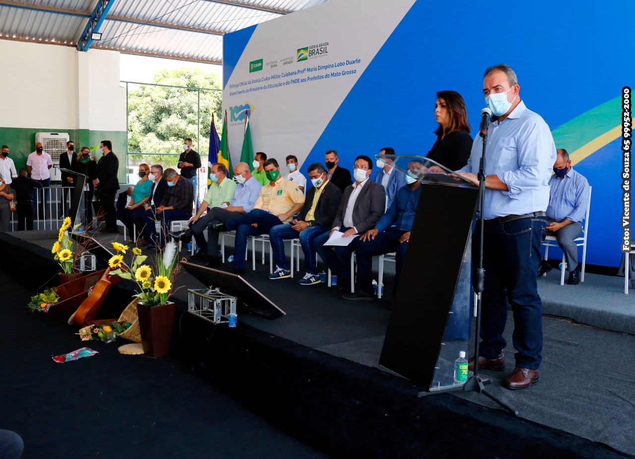 O Ministro da Educação, Milton Ribeiro, inaugurou em Cuiabá, a primeira Escola Cívico Militar, Maria Dimpina Lobo Duarte, na região do Coxipó, que servirá de modelo para outras Capitais. Ele ressaltou que as escolas do regime militar são muito boas, com exemplos de disciplina, organização e sobretudo de civismo. Na ocasião, o Ministro informou que desde o início do Governo, o Brasil tinha quatro mil obras referentes a escolas e creches paralisadas. Atualmente foram concluídas 1.500 obras em vários Estados, e citou que em Mato Grosso não será diferente.