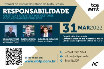 O Tribunal de Contas de Mato Grosso (TCE-MT) realiza, a partir das 8h desta quinta-feira (31), o seminário “Responsabilidade objetiva e subjetiva dos gestores e colaboradores públicos”. O evento híbrido contará com a presença do ministro do Tribunal de Contas da União (TCU) Benjamin Zymler.