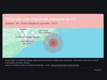 Moradores de diversas regiões do estado de São Paulo foram surpreendidos, na madrugada desta sexta-feira (14), com um alerta de terremoto emitido pelo sistema de detecção de tremores dos celulares Android. A notificação indicava a possibilidade de abalos sísmicos com magnitudes de 5,5 no litoral do estado.