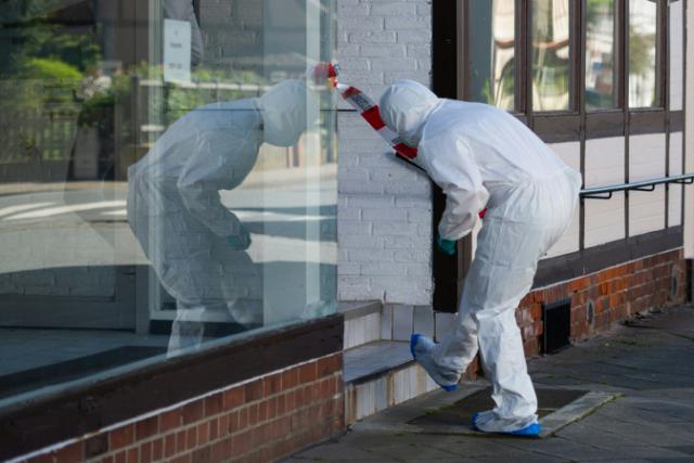 Um médico legista chega a uma cena de crime, em 13 de maio de 2019, em Wittingen, na Alemanha, onde dois corpos foram encontrados em uma casa