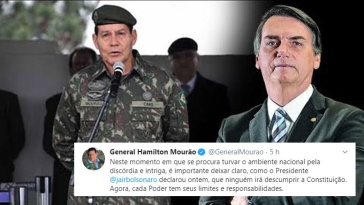 Nas redes sociais, Mourão destacou que está de acordo com o presidente sobre os limites e responsabilidades de cada poder: