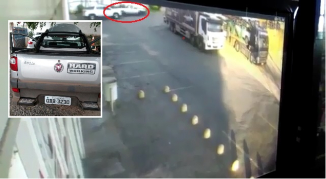 Conforme o boletim de ocorrência, os policiais viram o carro na garagem e desconfiaram após notar a placa limpa e o veiculo todo empoeirado. Ao realizar checagem, foi verificado que a picape é a mesma roubada do caminhão cegonha no mês passado e estava com a placa clonada.