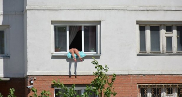 Uma mulher foi fotografada tomando sol deitada no parapeito do primeiro andar de um prédio no centro da cidade de Novosibirsk, na Rússia. A imagem, que é uma cena irritante aos vizinhos, viralizou nas redes sociais do país e chamou atenção da imprensa do país.