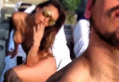 Na imagem que o rapaz postou na rede social, a apresentadora parece estar nua numa pose bem sensual na espreguiçadeira, tomando sol ao lado do amado.