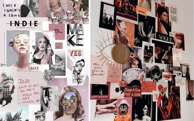 Para o próximo ano, as colagens são apostas que prometem surpreender. Aqui, o papel de parede dá espaço a estampas diferentes coladas, o que permite criar um estilo único para cada um dos cômodos. O objetivo da proposta é trocar quadros por colagens nas paredes e, nesse processo, variar tanto nos tamanhos quanto nas tonalidades. Inspire-se no estilo gallery wall.