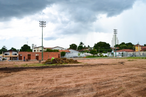 Paralelamente, os trabalhadores continuam se empenhando também no levantamento do vestiário, alambrado e arquibancadas do espaço esportivo. Do mesmo modo, outro grupo atua na instalação dos refletores. No local, já foram fixados seis postes nas laterais do campo, cada um com 12 luminárias. A obra é coordenada pelas secretarias municipais de Serviços Urbanos, Meio Ambiente e Desenvolvimento Urbano, e Obras Públicas.