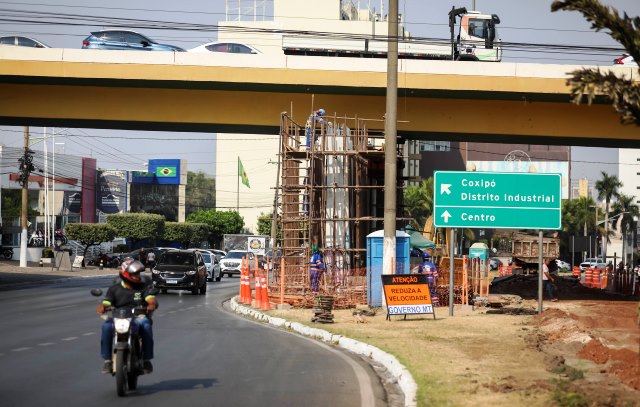 Com o avanço das obras de implantação do Complexo Viário do Leblon, em Cuiabá, foi preciso realizar uma alteração no trânsito na Avenida Miguel Sutil, na alça de acesso para a Avenida do CPA.
