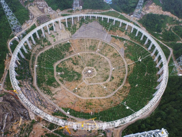 Busca de vida extraterrestre – A construção do radiotelescópio começou em 2011 com um investimento de 1,2 bilhão de iuanes (cerca de 750 milhões de reais) e, uma vez finalizado, terá diâmetro quase duas vezes maior e será três vezes mais sensível que o Observatório de Arecibo em Porto Rico, atualmente o maior radiotelescópio em atividade no globo. Ele terá 4.350 painéis de captação com habilidade para se movimentar e receber as ondas de radio. De acordo com a agência Xinhua, ele poderá captar mesmo as ondas mais fracas que chegarem de pontos distantes da galáxia.