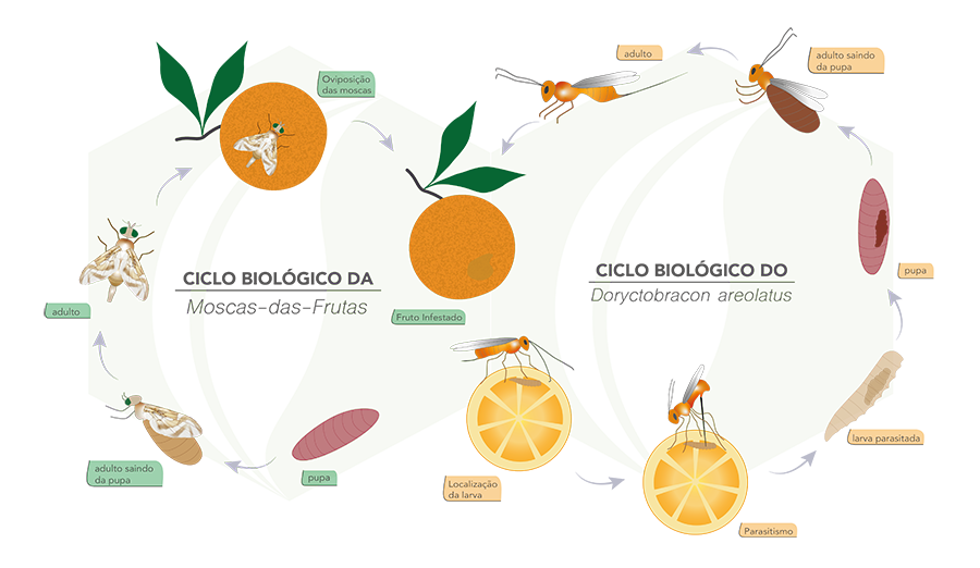 O controle biológico com uso de parasitoides entra como uma importante alternativa, uma vez que muitas frutas não têm ou possuem grade restrita de produtos registrados junto ao Mapa para o controle da mosca-das-frutas. O uso de produtos biológicos também atende a uma demanda dos consumidores, que buscam produtos cada vez mais livres de inseticidas químicos.