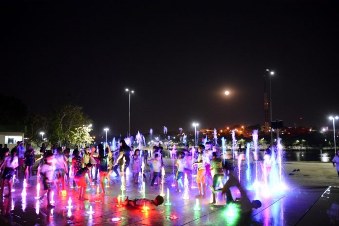 No mês de comemorações dos 298 anos de Cuiabá, o Parque das Águas recebeu ainda mais um incremento. Adquirido com o objetivo de ser uma das principais atrações, a fonte luminosa, juntamente com o Túnel das Águas de 14 metros, passou a compor o quadro de atrações do parque.