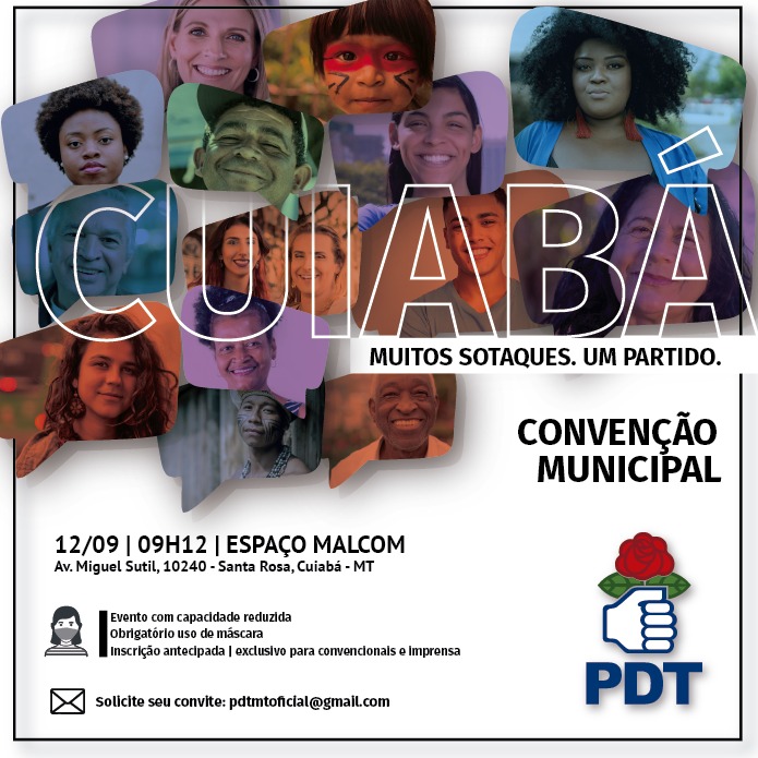 O diretório municipal do Partido Democrático Trabalhista (PDT) de Cuiabá realizará convenção no próximo sábado (12), das 9h12 às 12h12, no bairro Santa Rosa, para anunciar as coligações e definir os candidatos à eleição majoritária a prefeito e vice-prefeito e nas proporcionais para vereador. O presidente do diretório municipal, Fabrício Carvalho, será oficializado como candidato a prefeito de Cuiabá pelo partido.