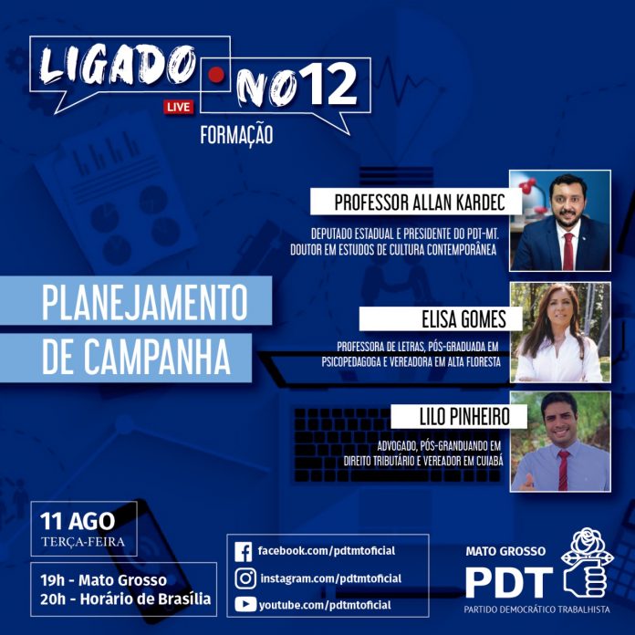 Com a aproximação do período eleitoral, o diretório estadual do PDT Mato Grosso passou a promover lives de formação para pré-candidatos nas eleições municipais 2020, visando a qualificação em diversos aspectos que envolvem as campanhas eleitorais.