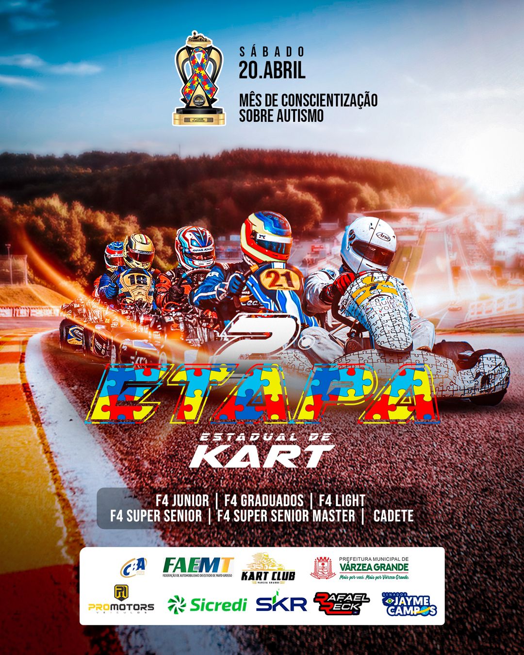 No mês de conscientização sobre o autismo, onde a sociedade se volta no debate sobre o tema, Mato Grosso se prepara para a 2° Etapa Estadual de Kart, a ser realizada neste sábado (20.04) às 08 horas, no Kart Club de Várzea Grande. O evento tem o intuito da conscientização do autismo e ‘renovar o compromisso com a inclusão e o entendimento’.