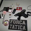 Quando a viatura se aproximou, um dos garotos tentou fugir, mas logo foi abordado e checado pelos policiais. Durante a checagem via rádio, os militares perceberam uma pistola cal. 380 com carregador e 03 munições intactas. Ao checar o interior da residência foram encontrados diversos produtos eletroeletrônicos, como máquinas fotográficas, aparelhos de DVD e pen drives – cuja origem não foi comprovada por documentação – e um carrinho para acalentar bebês.