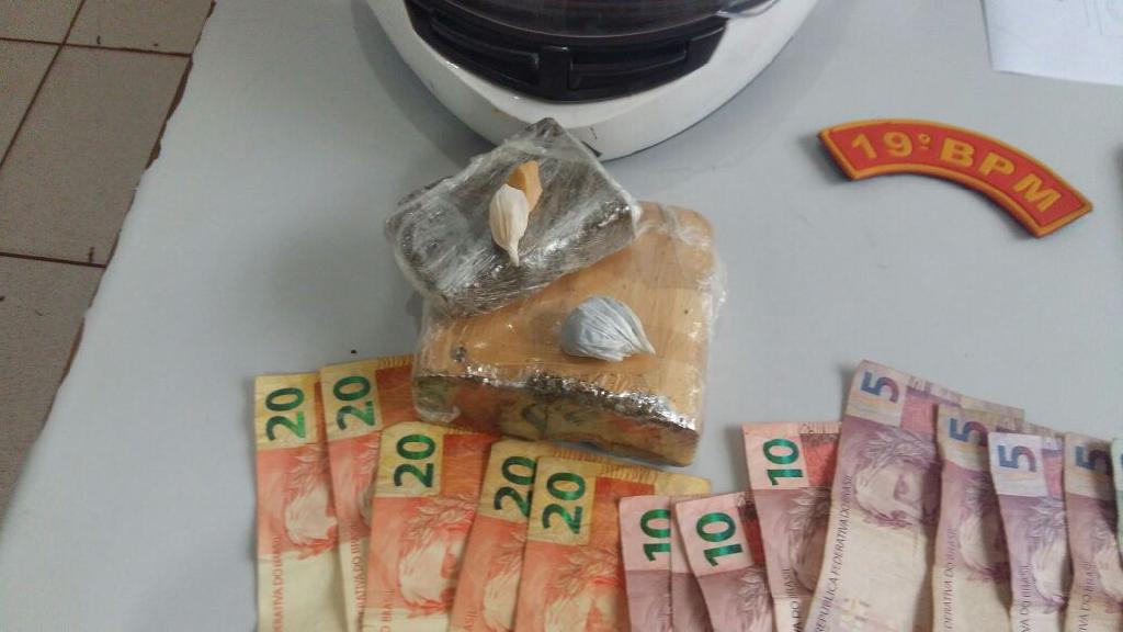 Com essa informação a equipe policial se deslocou até o local informado, onde detiveram mais dois, M.F.S. e A.P.M., ambos com 18 anos, e apreenderam o adolescente D.V.S., 16. Com eles foram encontrados meio tablete de maconha e duas porções de pasta-base.