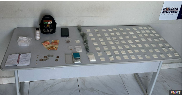 Um homem de 35 anos foi preso pela Polícia Militar por tráfico ilícito de drogas, em Cuiabá. O suspeito foi detido em flagrante no bairro Porto com 84 porções de substâncias análogas à cocaína e maconha.