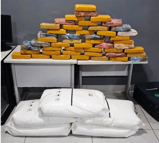 Os policiais entraram no terreno de onde o homem saiu e realizaram buscas, onde encontraram 47 tabletes de pasta base de cocaína e cinco sacos contendo ácido bórico, totalizando 50 quilos de entorpecentes encontrados.
