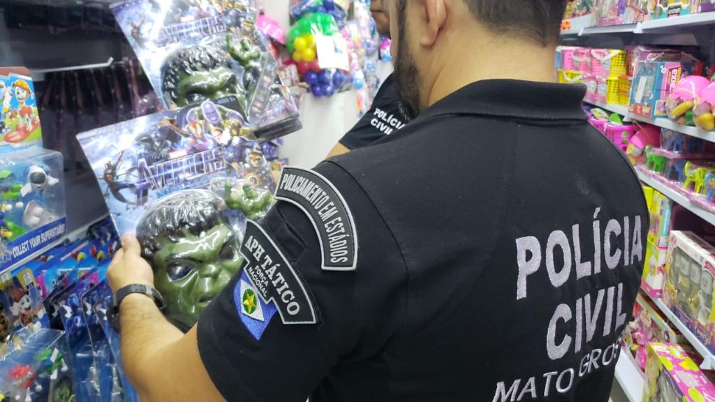 Os trabalhos iniciaram de forma simultânea, nas primeiras horas da manhã, em quatro grandes lojas do Centro de Cuiabá, resultando na apreensão de milhares de brinquedos contrafeitos de personagens com direitos autorais licenciados por empresas como, por exemplo, Marvel, Nintendo e Sega.![]()
