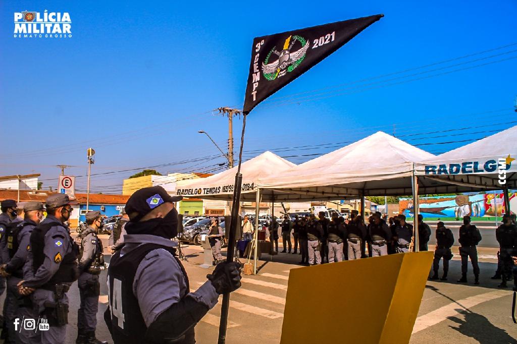 A solenidade de lançamento do reforço policial nas ruas foi realizada em frente ao SESC Arsenal, em Cuiabá. A operação segue até o dia 30 de outubro.