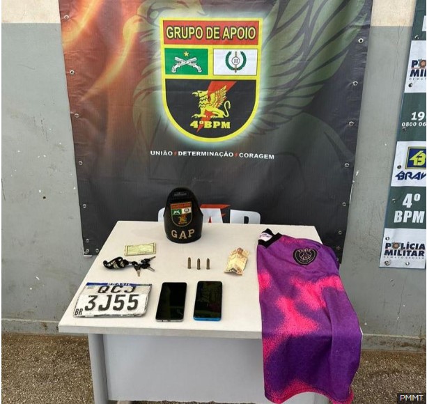 A equipe do Grupo de Apoio (GAP) do 4º BPM estava em patrulhamento pelo bairro Novo Mato Grosso quando abordou um homem em atitude suspeita, na frente de uma residência. Com ele os policiais encontraram três munições e um celular. O homem tentou fugir, mas foi detido rapidamente.