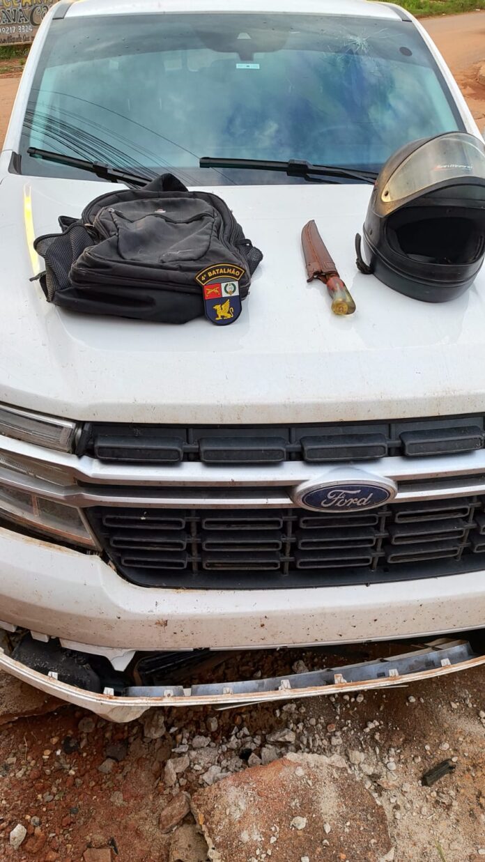 Em seguida, o motorista perdeu controle do veículo, batendo contra o meio-fio e um pilar. Ele tentou fugir pulando os muros da residências, mas foi detido em seguida. Questionado quanto ao comparsa e a arma de fogo, o homem confessou que o segundo suspeito fugiu em uma motocicleta.