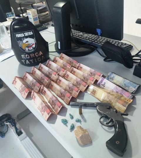 Durante patrulhamento de rotina pela área central da cidade, os policiais observaram a criminosa identificada pelas iniciais L.S.S. em frente a casa dela, demonstrando comportamento nervoso, enquanto falava ao telefone. Ao notar a presença da equipe, ela descartou um objeto ao solo e tentou, rapidamente entrar na residência, mas foi abordada pelos agentes.