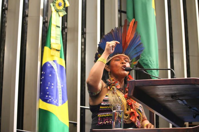 Em seu roteiro pelo Brasil, a pré-candidata à co-presidência da república, Sônia Guajajara, visitará Cuiabá nesta segunda-feira (11/06) com intensa programação. Sônia é uma importante liderança indígena, reconhecida por diversos movimentos sociais e contribui para uma nova proposta de país e uma nova forma de fazer política. A passagem dela pela capital do estado contará com um encontro na Universidade Federal de Mato Grosso. Durante a pré-campanha das eleições que se aproximam, a pré-candidata da chapa formada pela aliança entre PSol, PCB e Movimentos Sociais vem discutindo por todas as regiões as propostas para uma plataforma ecossocialista.