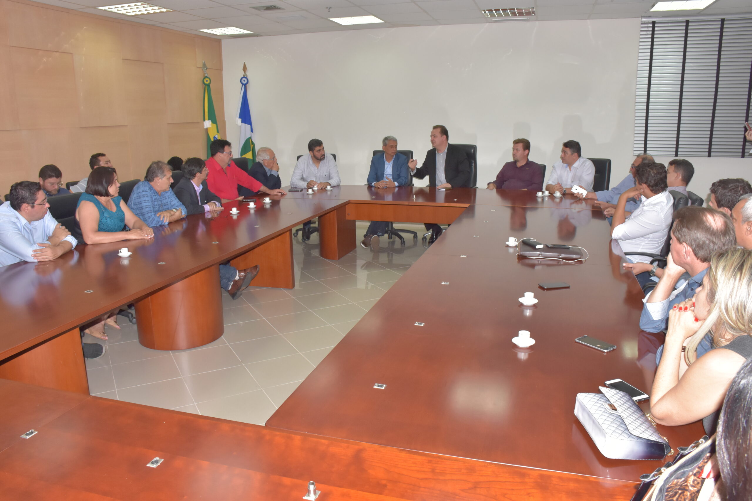 Prefeitos se reuniram com o secretário-chefe da Casa Civil, Max Russi, para cobrar o repasse de recursos atrasados e reivindicar maior transparência na arrecadação de tributos estaduais, como o Imposto sobre Circulação de Mercadorias e Serviços – ICMS e Fundo Estadual de Transporte e Habitação – Fethab. A reunião foi coordenada pelo presidente da Associação Mato-grossense dos Municípios – AMM, Neurilan Fraga, que reivindicou maior prioridade aos municípios, que não estão tendo condições de atender demandas básicas, devido aos constantes atrasos no recebimento de recursos.