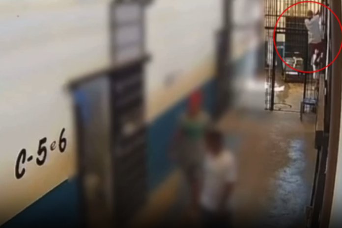 Imagens de uma câmera de segurança mostram quando alguns detentos abaixam as câmeras antes de cometer o crime.
