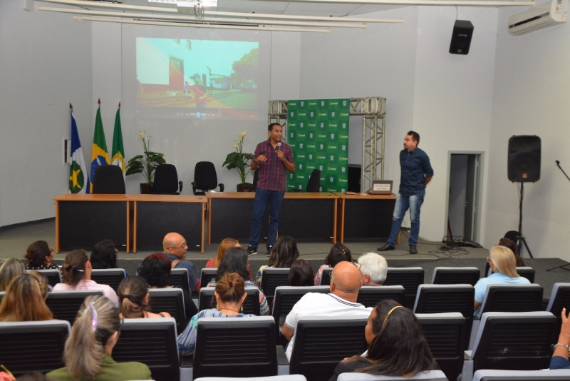 O facilitador do Museu da Imagem e do Som de Cuiabá (MISC) Itinerante, Justino Astrevo, o Lau da dupla Nico & Lau, esteve no auditório Maestro China, da Secretaria Municipal de Educação (SME), com seu companheiro de cena, Lioniê Vitório (Nico), para apresentar o projeto aos servidores e técnicos.