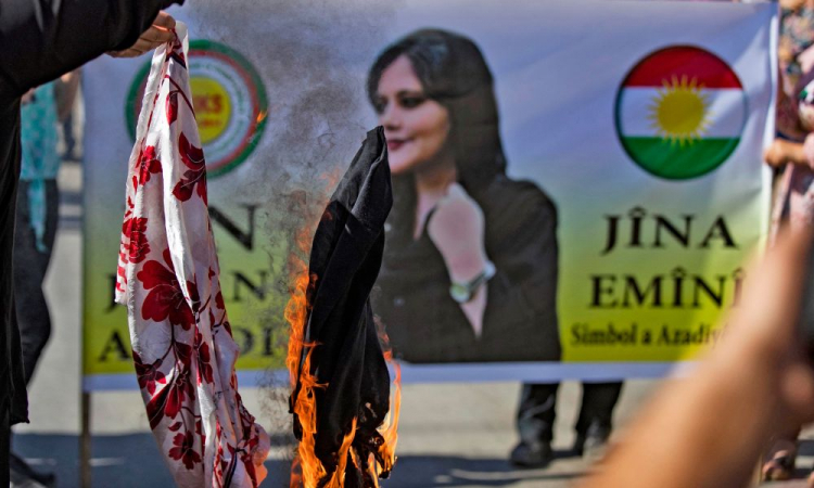 Em represália as atitudes das autoridades iranianas e em apoio as manifestações, novas sanções foram importas ao Irã. Depois dos Estados Unidos e do Canadá, o Reino Unido anunciou nesta segunda-feira sanções contra as autoridades iranianas e a polícia da moralidade, acusada de responsabilidade na morte da jovem curda. O Parlamento Europeu pediu, por sua vez, que a Comissão do bloco adote sanções. A questão será debatida na próxima reunião de ministros das Relações Exteriores dos 27 países-membros, em 17 de outubro. Segundo várias organizações pró-direitos humanos, cerca de 100 jornalistas, ativistas, artistas e membros da sociedade civil foram presos pelas autoridades do Irã desde o início do movimento de contestação. Outras personalidades iranianas tiveram seus passaportes confiscados por apoiarem os manifestantes. Entre elas, estão a lenda do futebol Ali Daei (que teve o documento devolvido depois), o cantor Homayoun Shajarian e sua esposa, a atriz Sahar Dolatshahi, e o cineasta Mehran Modiri, segundo a agência de notícias Ilna.