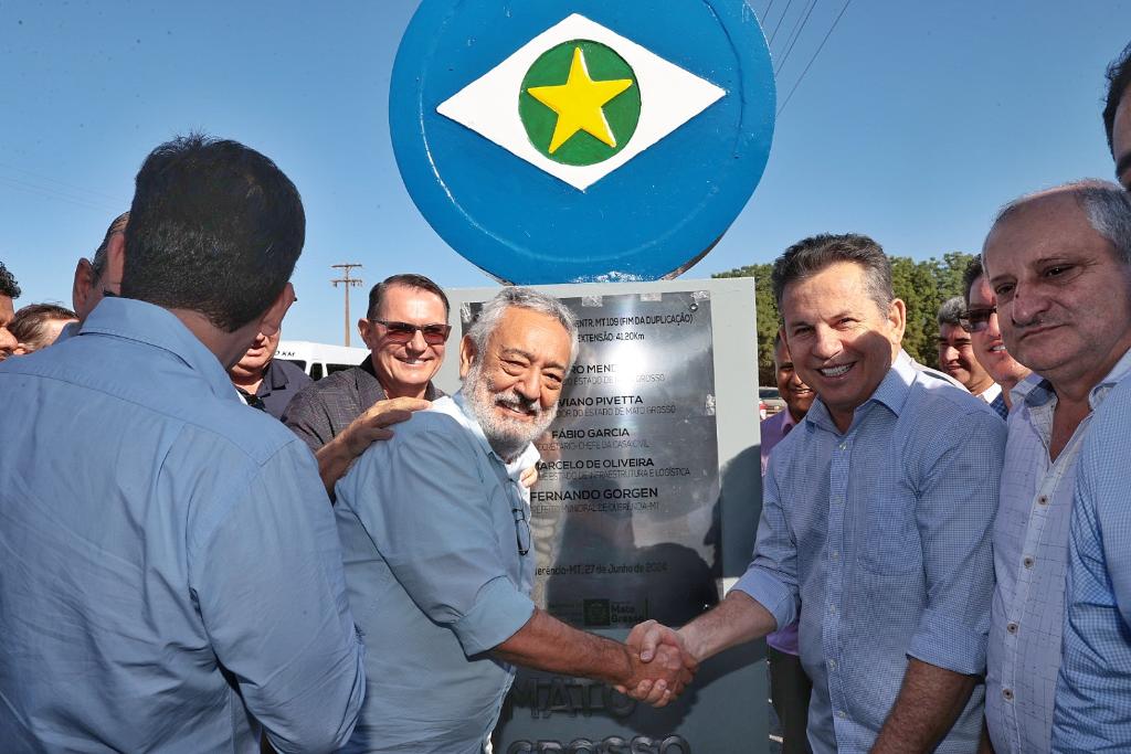 O governador Mauro Mendes inaugurou, na manhã desta quinta-feira (27.06), 41,2 quilômetros de asfalto novo da MT-243, no trecho do Rio Tanguro, em Querência. O investimento é de R$ 38,8 milhões.