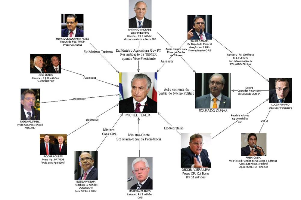 PowerPoint em que todas as flechas apontam para Lula virou piada nacional por sua inconsistência, mas nem por isso o ex-presidente pareceu inocente da enormidade de acusações que lhe são feitas e que, agora, ganham o reforço notável do ex-ministro Antonio Palocci. Outra imagem no mesmo formato, divulgada na semana passada, coloca o presidente Michel Temer no centro do comando de uma organização criminosa que ganhou o apelido aumentativo de “quadrilhão”. Ao mesmo tempo, um dos mamutes do mundo dos negócios, a JBS, gigante mundial de carne processada, perde seus dois principais acionistas para a prisão, numa sugestão de que, sob o comando dos irmãos Batista, a empresa se tornou, ela mesma, uma espécie de quadrilha.