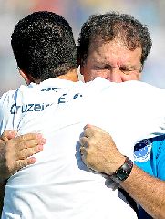 Um pouco abaixo na tabela, Botafogo e Palmeiras (respectivamente, com 44 e 42 pontos) empataram em 0 x 0 no Engenhão e não se veem autorizados a voos tão altos. Foi o sétimo empate consecutivo da equipe carioca, que viu Loco Abreu chutar um pênalti para fora no primeiro tempo. Do lado alviverde, Felipão fala apenas em Sul-Americana: a jornada começa na quinta, na Bolívia, contra o Universitário de Sucre.
