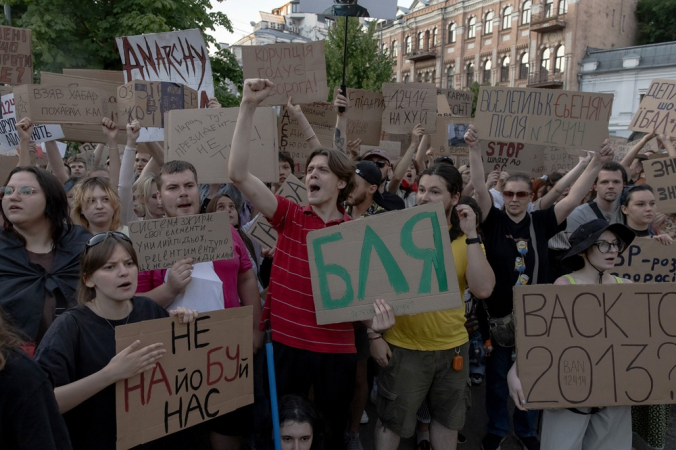 A tentativa do presidente Volodymyr Zelensky em acabar com a independência de órgãos anticorrupção é a crítica central de milhares de ucranianos