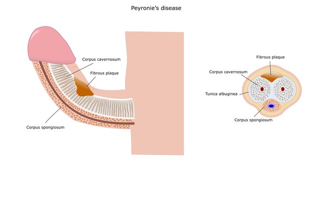 A doença se trata de uma acumulação de placa dentro do eixo peniano que pode fazer com que essa parte se endureça e fique dobrada. Isso faz com que o homem tenha dificuldade de obter uma ereção e também pode causar disfunção erétil.