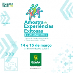 A Secretaria Municipal de Saúde de Cuiabá (SMS) realizará a “1ª Amostra de Experiências Exitosas da Atenção Primária” nesta quinta e sexta-feira (14 e 15/03). O evento que está sendo organizado pela Diretoria de Atenção Primária acontecerá das 08h às 17h30 (com intervalo para almoço) no Cine Teatro Cuiabá.