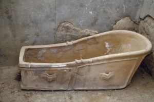 Os romanos ricos desfrutavam do luxo de ter água corrente em seus palácios e vilas, alimentada por canos de chumbo conectados a aquedutos. Os sofisticados sistemas de encanamento também abasteciam as fullonicas, ou lavanderias (foto)