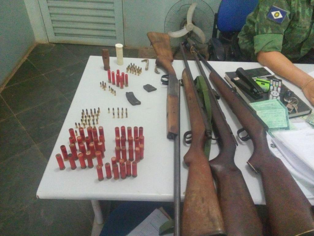 Policiais do Batalhão de Polícia Militar Ambiental e fiscais da Secretaria Estadual de Meio Ambiental (Sema), flagraram quatro homens com armas e animais silvestres recém abatidos.