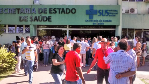 O acumulo de lixo e o mau cheiro ocasionaram na manhã de hoje (19.12) a suspensão dos atendimentos no prédio central da Secretaria de Estado de Saúde (SES).
