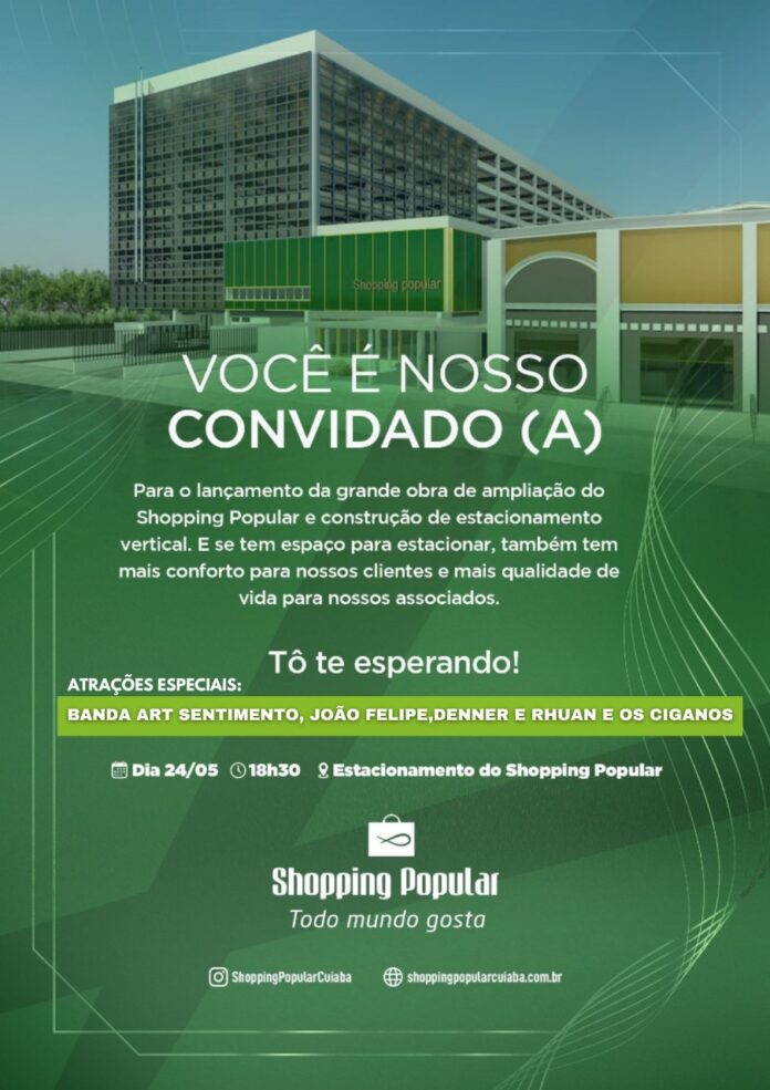 O Shopping Popular está pronto para escrever um novo capítulo em sua história com o tão esperado lançamento da obra de ampliação e construção do estacionamento vertical, marcado para esta sexta-feira (24) a partir das 18:30h. A obra cumpre a lei 9.600/2023 que autoriza a permuta da área onde está localizado o Shopping Popular.
