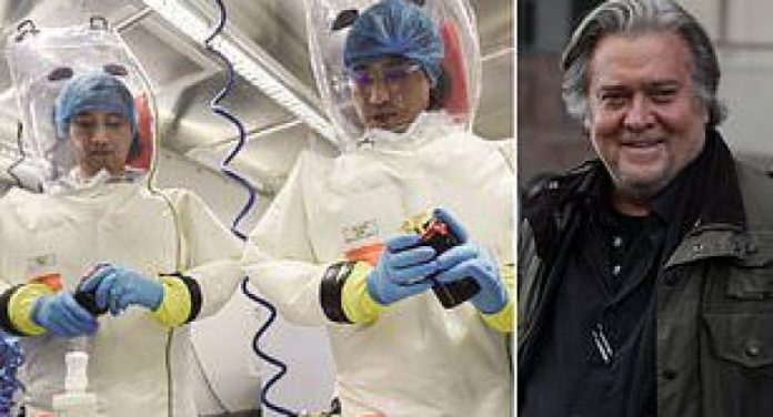 Bannon diz que os espiões estão tentando montar um caso em que o vírus se espalhou como resultado de um acidente envolvendo experimentos para desenvolver vacinas e medicamentos terapêuticos para lidar com a Sars. (Sindrome Respiratória Aguda Grave)