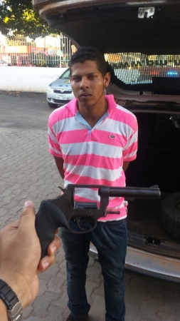 PM em rondas pelo bairro Unipark na rua Zulmira Ferraz, abordou um indivíduo em fundada suspeita conduzindo um corsa wind branco placa JYUC 9717 , sendo realizada a busca pessoal e veicular, na qual foi encontrado um revólver calibre 38 n° 663855 com 05 munições intactas, e R$ 470,00 em espécie.