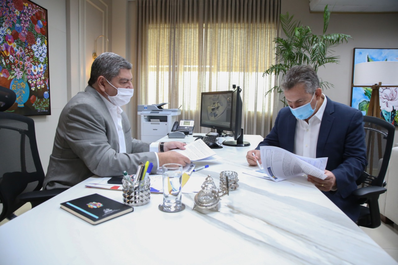 O presidente do Tribunal de Contas de Mato Grosso (TCE-MT), conselheiro Guilherme Antonio Maluf e o governador do Estado Mauro Mendes assinaram nesta segunda-feira (01), Termo de Compromisso Emergencial para centralizar a regulação dos leitos de UTI e enfermaria disponíveis para o atendimento exclusivo de pacientes acometidos pelo novo coronavírus (Covid-19).