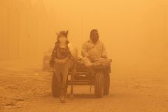 Tempestades de areia são comuns em Bagdá que é separada do deserto apenas por uma estreita faixa de terras aráveis entre os rios Tigre e Eufrates.