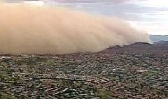 Tempestades com trovoadas recentes geraram fortes ventos, que levantaram poeira da área desértica do Estado, no sudoeste dos Estados Unidos.