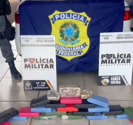 E mais ação conjunta que deu certo, equipes das Polícias Militar (PM) e Rodoviária Federal (PRF) interceptaram um veículo que trafegava pela região de Canarana, a 823 km de Cuiabá, no Vale do Araguaia, e apreenderam 25 quilos de pasta base de cocaína. O condutor do automóvel, um homem de 28 anos, foi preso por tráfico de drogas.