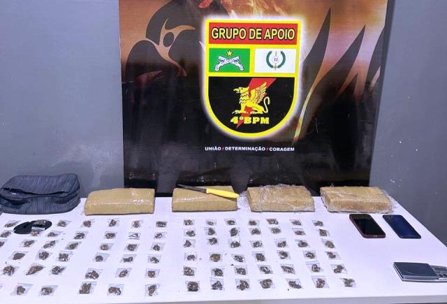 Os policiais seguiram ao endereço informado e conseguiram deter o segundo homem. Nas buscas no interior do imóvel, os militares encontraram quatro tabletes inteiros de maconha e mais porções da mesma droga.