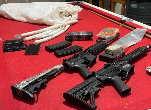 Na ação das forças de segurança, em uma casa, duas mulheres foram presas com 30 quilos de pasta base de cocaína. Em outra casa, um bandido foi preso com fuzil e munições. Já no final da tarde, em outra casa usada pelos criminosos, os policiais encontraram 57 bananas de dinamite, espoletas e cordéis de detonação, e mais dois fuzis com carregadores e munição. Mais dois homens e uma mulher foram presos.